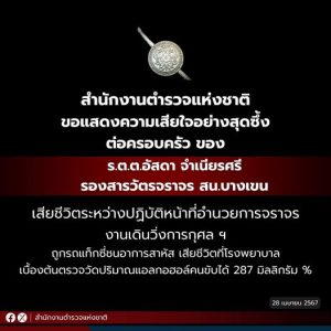 สำนักงานตำรวจแห่งชาติ ขอแสดงความเสียใจต่อครอบครัว ร.ต.ต.อัสดาฯ โดยจะดูแลสิทธิสวัสดิการ ช่วยเหลือครอบครัวต่อไป