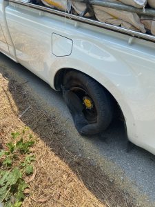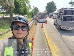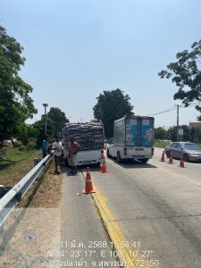 จราจร ว.4 ตรวจสอบรถยนต์บรรทุกยางแตก จอดกีดขวางเส้นทางการจราจร ถนน340 ขาเข้ากทม. กม.58