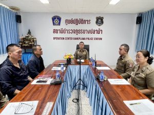 ได้เรียกประชุมข้าราชการตำรวจ ณ ห้องประชุมช้ัน 3 สภ.บางปลาม้า