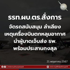 รรท.ผบ.ตร.สั่งการจัดรถสนับสนุนลำเลียงเหตุเครื่องบินตกหลุมอากาศ นำผู้บาดเจ็บส่ง รพ.พร้อมประสานกงสุล