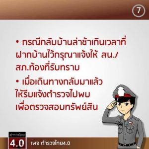 ▫️เมื่อเดินทางกลับมาแล้ว ให้รีบแจ้งตำรวจไปพบ เพื่อตรวจสอบทรัพย์สิน