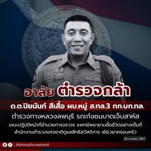 อาลัย “ตำรวจกล้า” ทำหน้าที่ตำรวจจนบาดเจ็บสาหัส ถึงวาระสุดท้ายของชีวิต “ด.ต.ปิยนันท์ สีเสื้อ” ตำรวจทางหลวงลพบุรี เสียชีวิตแล้ว