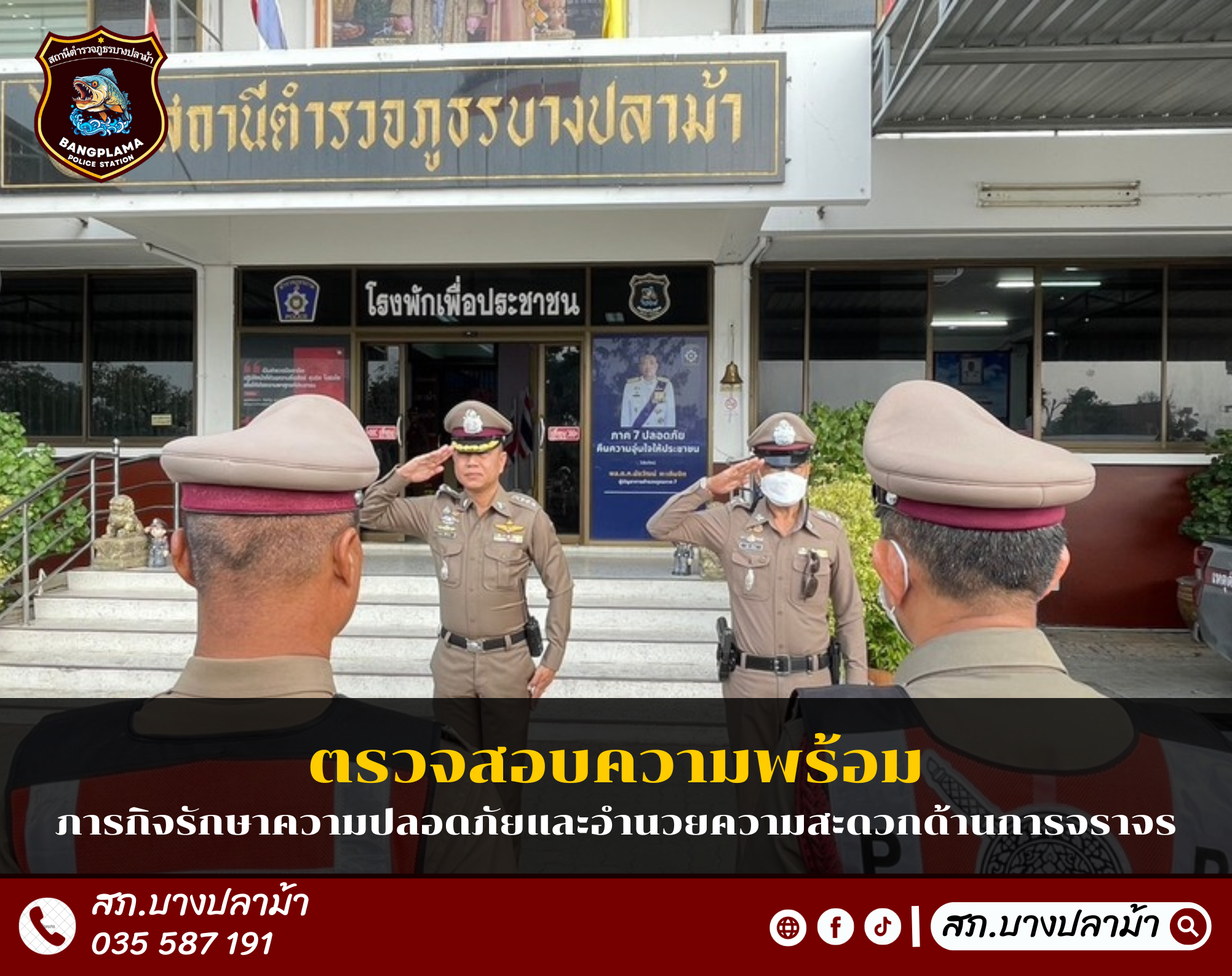 เรียนผู้บังคับบัญชา สภ.บางปลาม้า วันนี้(19 ก.พ.68) เวลา 09.00 น. พ.ต.อ.มงคล วิลัยเกษม ผกก.สภ.บางปลาม