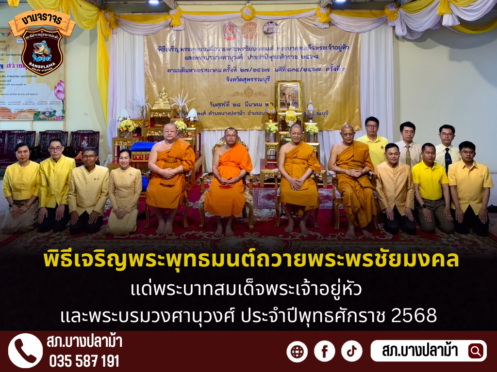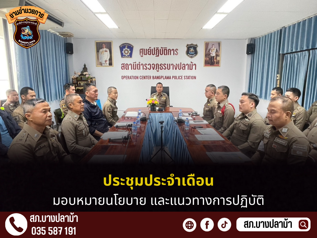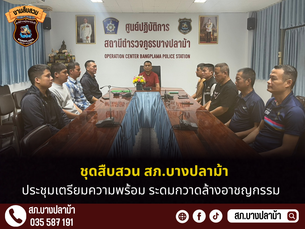 เรียนผู้บังคับบัญชา ภ.จว.สุพรรณบุรี สภ.บางปลาม้า วันนี้ 20 มีนาคม 2568 เวลาประมาณ 13.30น. พ.ต.อ.มงคล