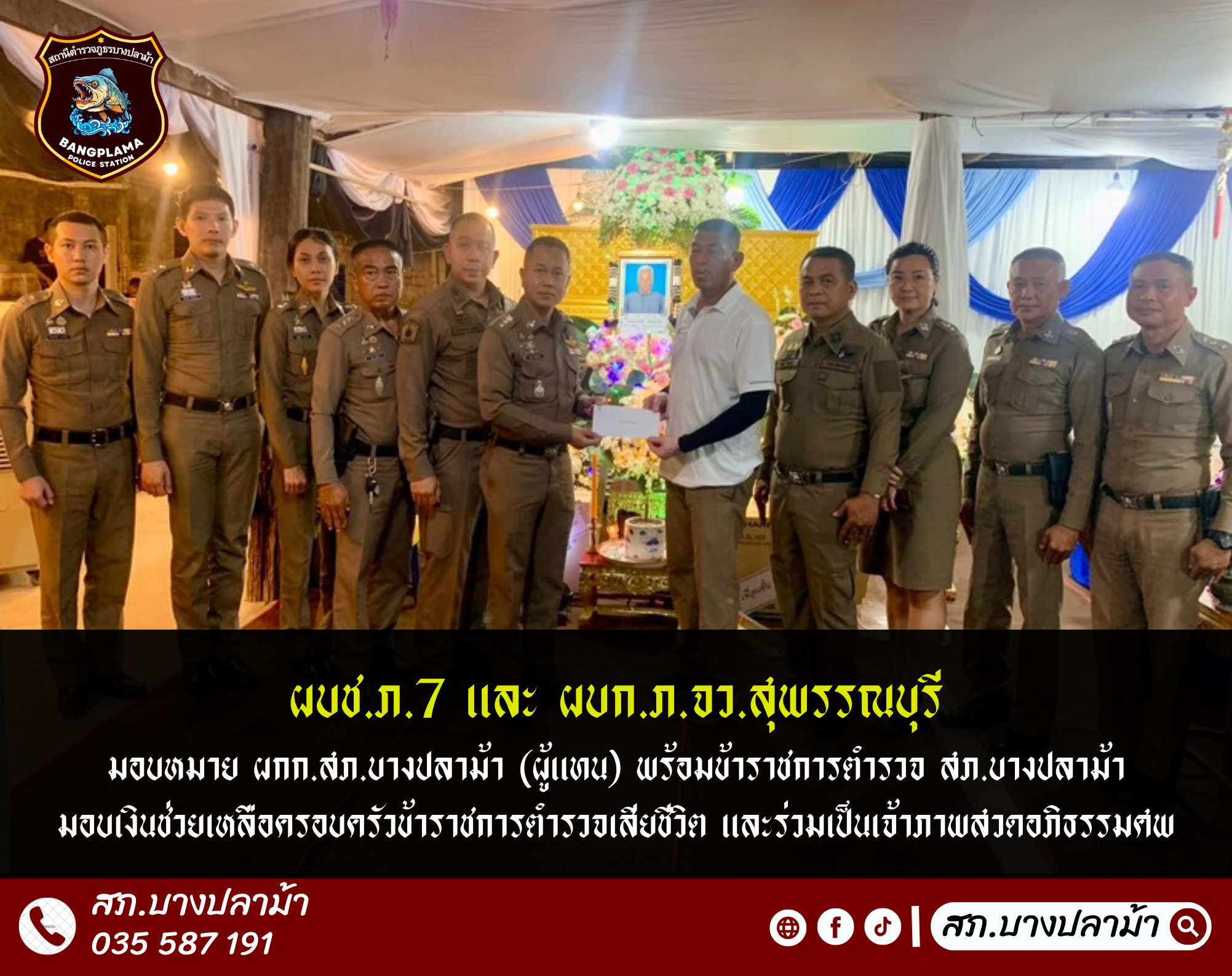 เรียนผู้บังคับบัญชา ภ.จว.สุพรรณบุรี สภ.บางปลาม้า วันนี้ 4 มีนาคม 2568 เวลาประมาณ 19.30น. พล.ต.ท.นัยว