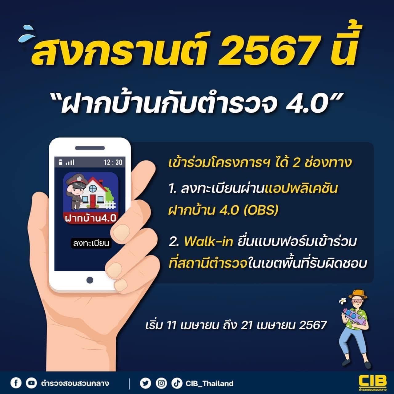 สงกรานต์ 2567 นี้ “ฝากบ้านกับตำรวจ 4.0” . ตำรวจสอบสวนกลาง (CIB) ขอเชิญชวนเข้าร่วม ”โครงการร่วมใจยกระ