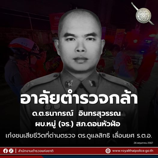 สภ.บางปลาม้า ขอแสดงความอาลัยยิ่ง ต่อครอบครัวของ ด.ต.ธนากรณ์ อินทรสุวรรณ ผบ.หมู่ (จร.) สภ.ดอนหัวฬ่อ จ