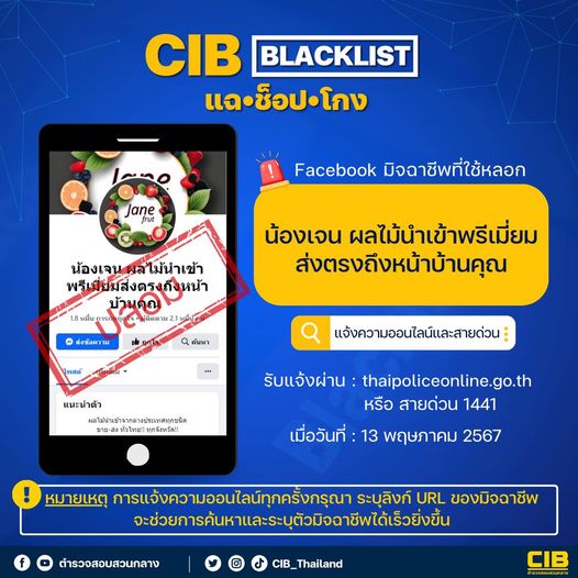 CIB BLACKLIST แฉ•ช็อป•โกง แคมเปญที่จะช่วยให้คุณไม่ให้ตกเป็นเหยื่อการฉ้อโกงออนไลน์ . เฟซบุ๊กมิจฉาชีพ
