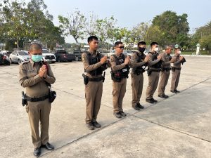 3) ผู้บังคับบัญชาปล่อยแถว : พ.ต.ต.พนม มั่นปาน สว.ป
