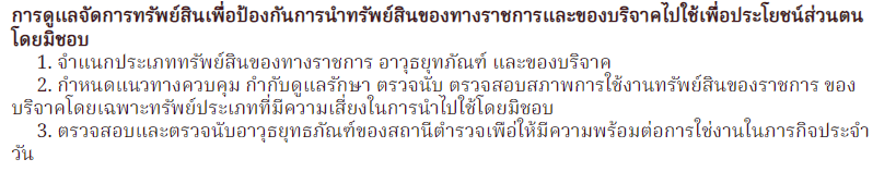 1.1 ตรวจสอบและตรวจนับอาวุธยุทธภัณฑ์ของสถานีตำรวจเพื่อให้มีความพร้อมต่อการใช้งานในภารกิจประจำวัน