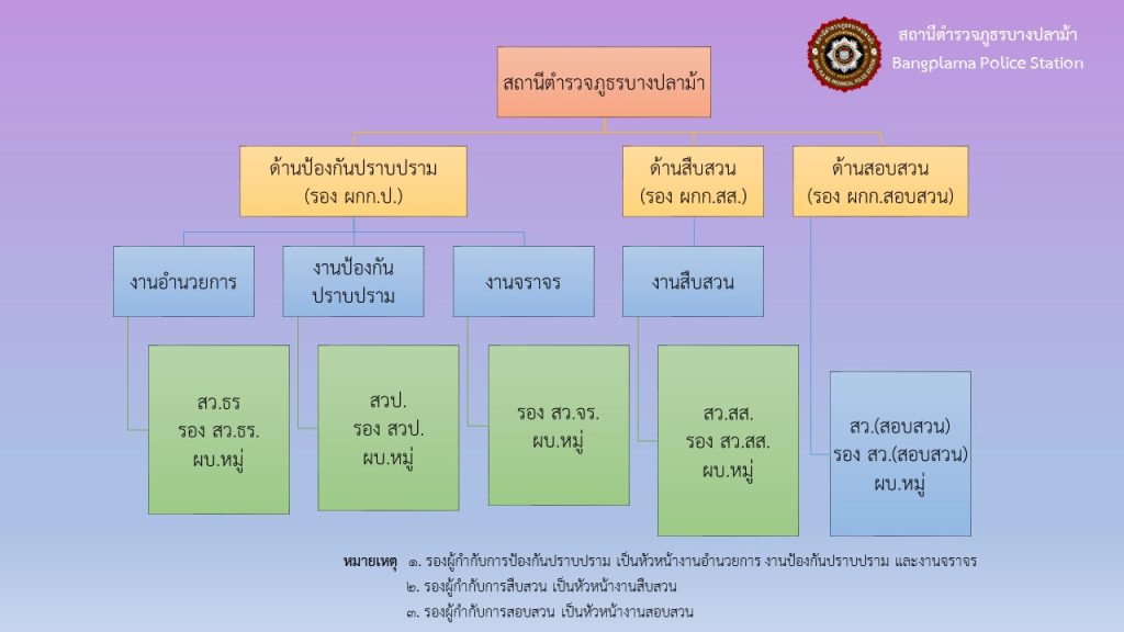 แผนผังโครงสร้างการแบ่งส่วนราชการของสถานีตำรวจ