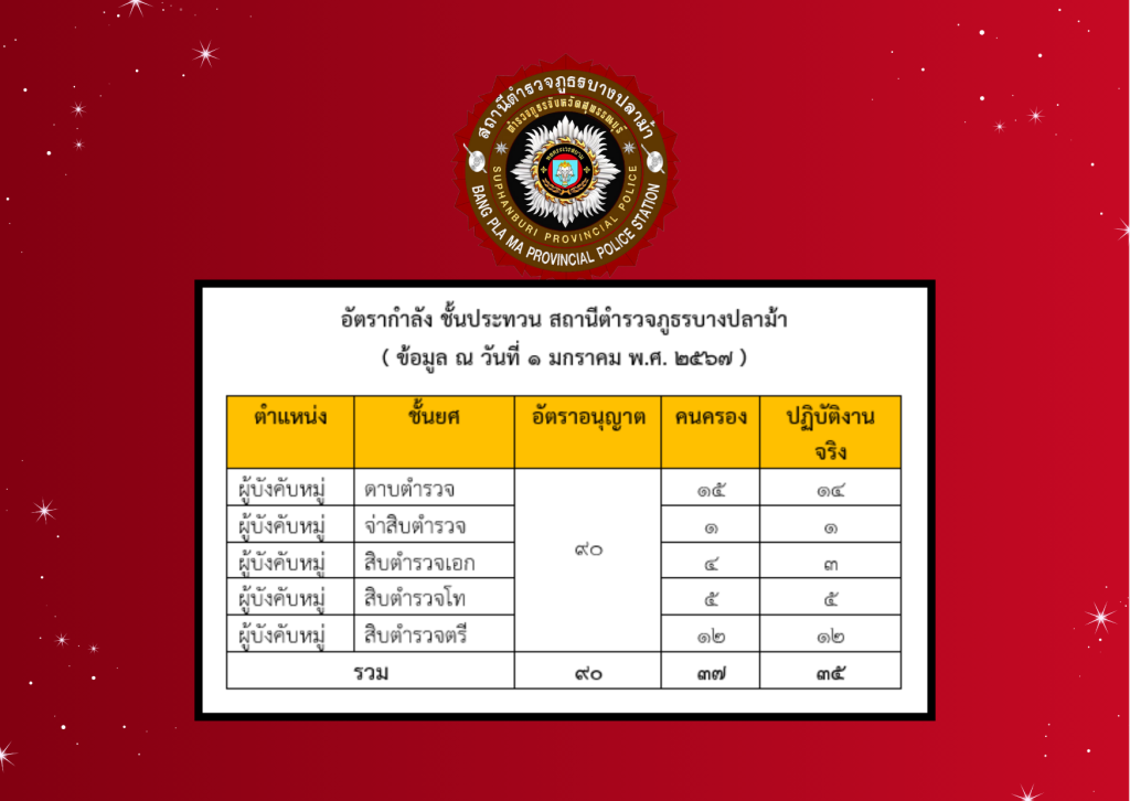 อัตรากำลัง ของสถานีตำรวจภูธรบางปลาม้า