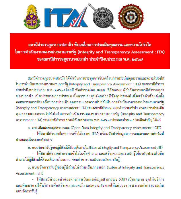 Click ดู กิจกรรมการขับเคลื่อน ITA ของ สภ.บางปลาม้า ที่นี่