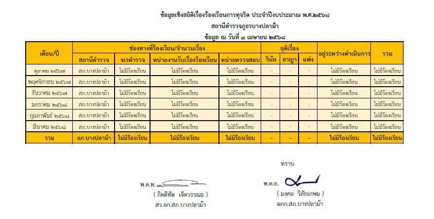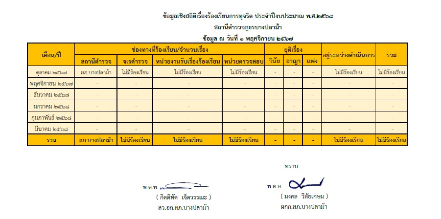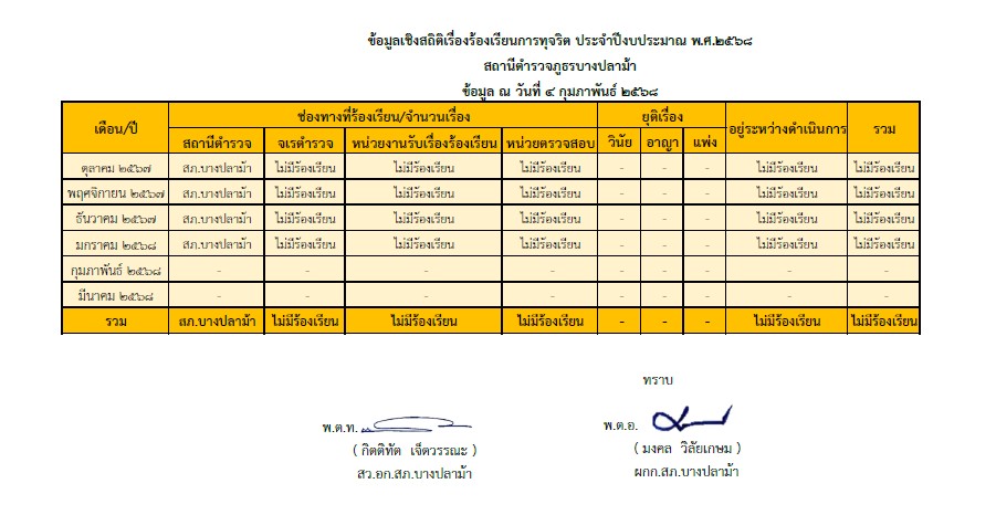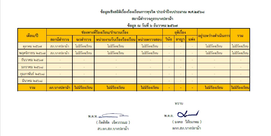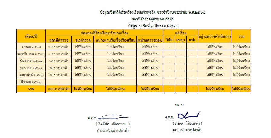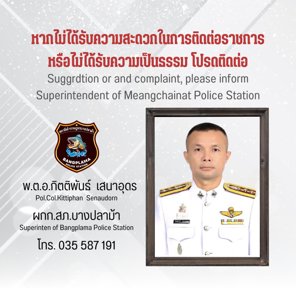 ช่องทางแจ้งเรื่องร้องเรียนการทุจริตของสถานีตำรวจภูธรบางปลาม้า