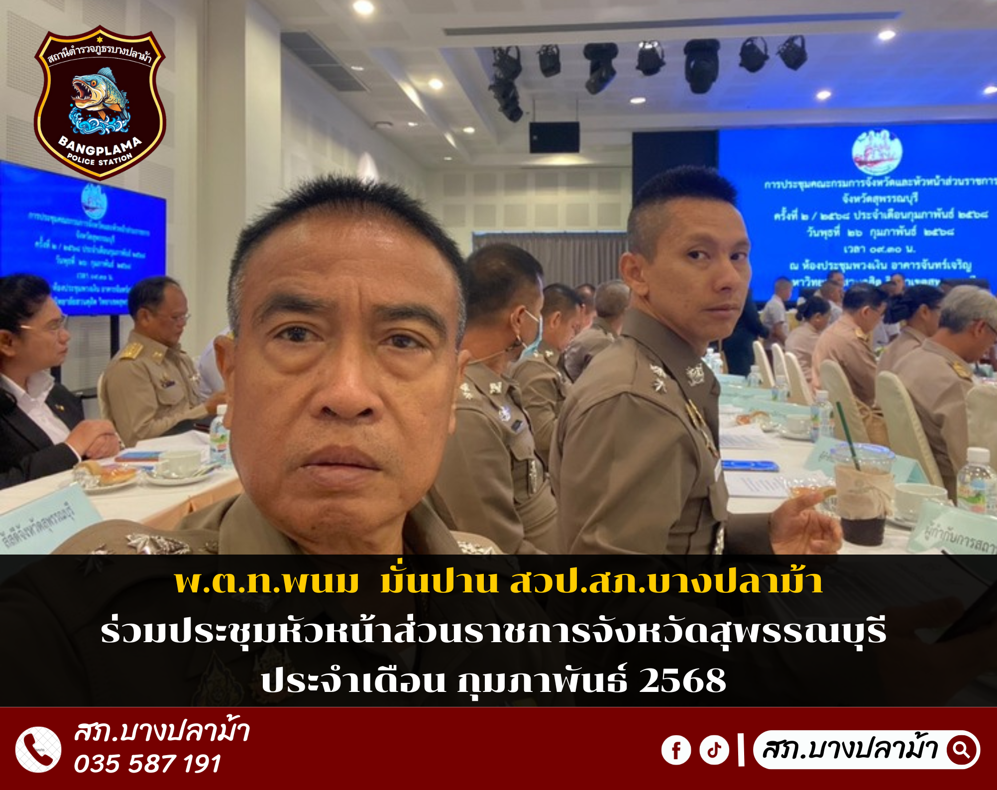 เรียนผู้บังคับบัญชา ภ.จว.สุพรรณบุรี สภ.บางปลาม้า วันนี้ 17 พฤศจิกายน 2568 เวลาประมาณ 19.30 น. พล.ต.ท