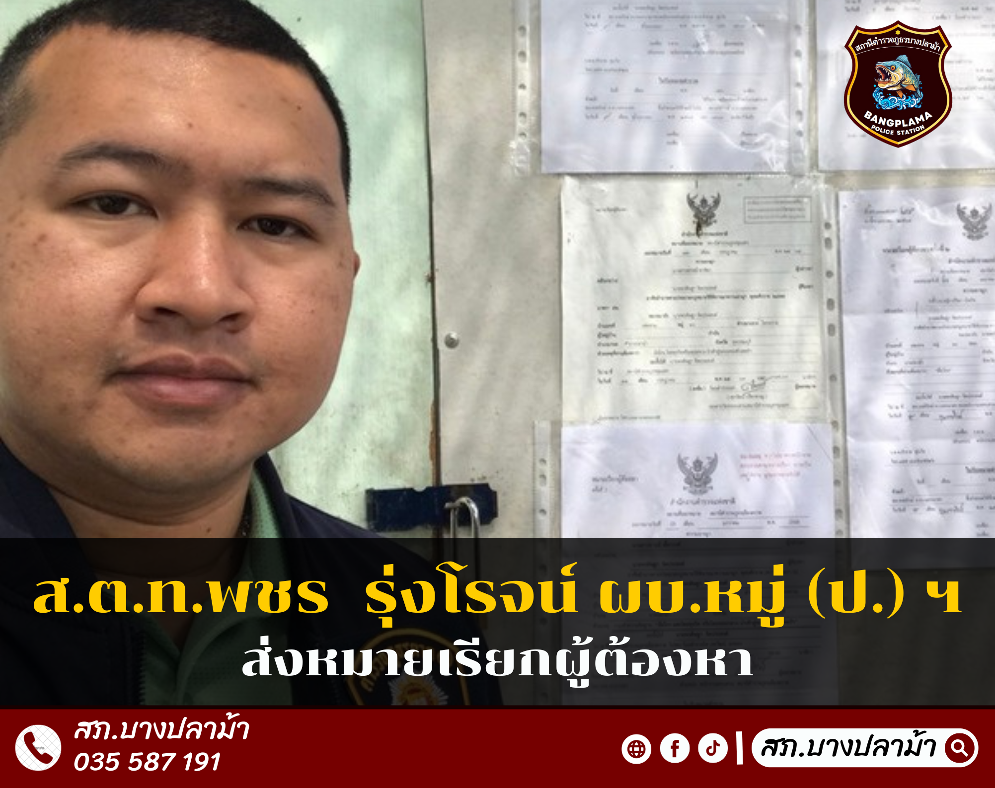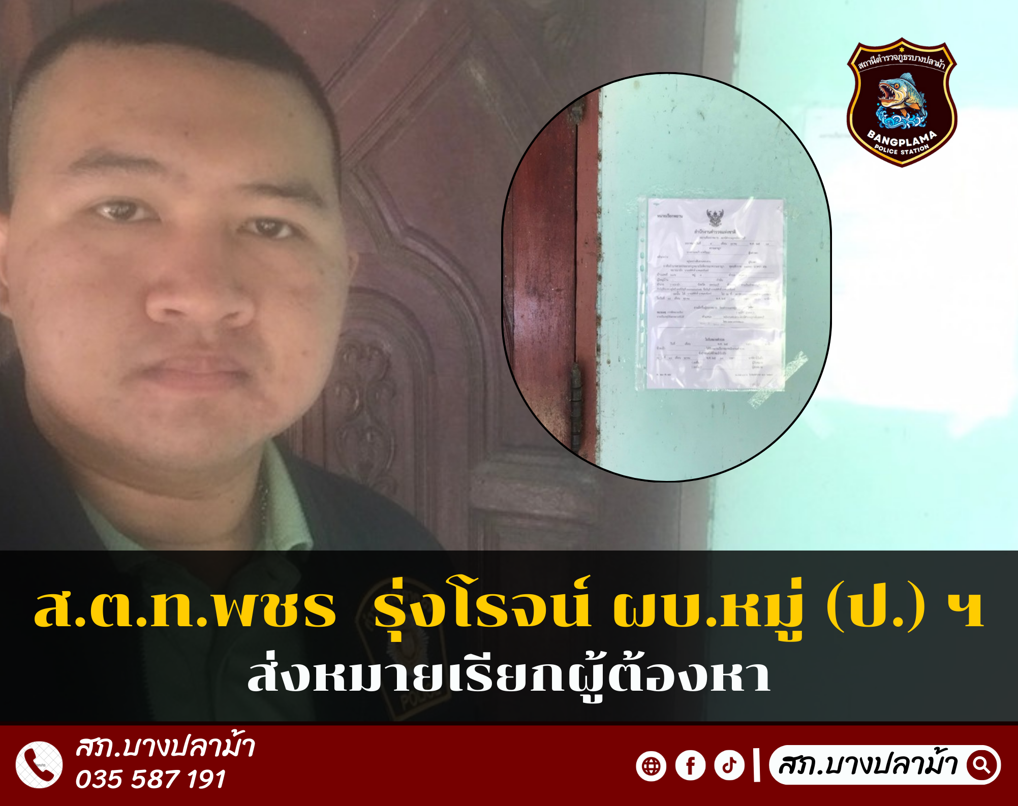 เรียน ผู้บังคับบัญชา สภ.บางปลาม้า ภ.จว.สุพรรณบุรี วันที่ 20 มกราคม 2569 เวลา 16.30น. พ.ต.อ.กิตติพัน